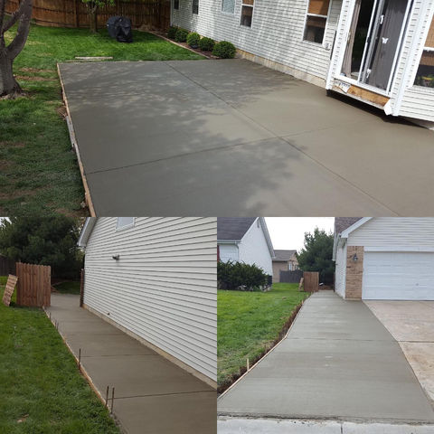 Our options for pouring a broom finished patio can be enhanced with adding curves, fire pit areas and additional cut outs for privacy foliage.